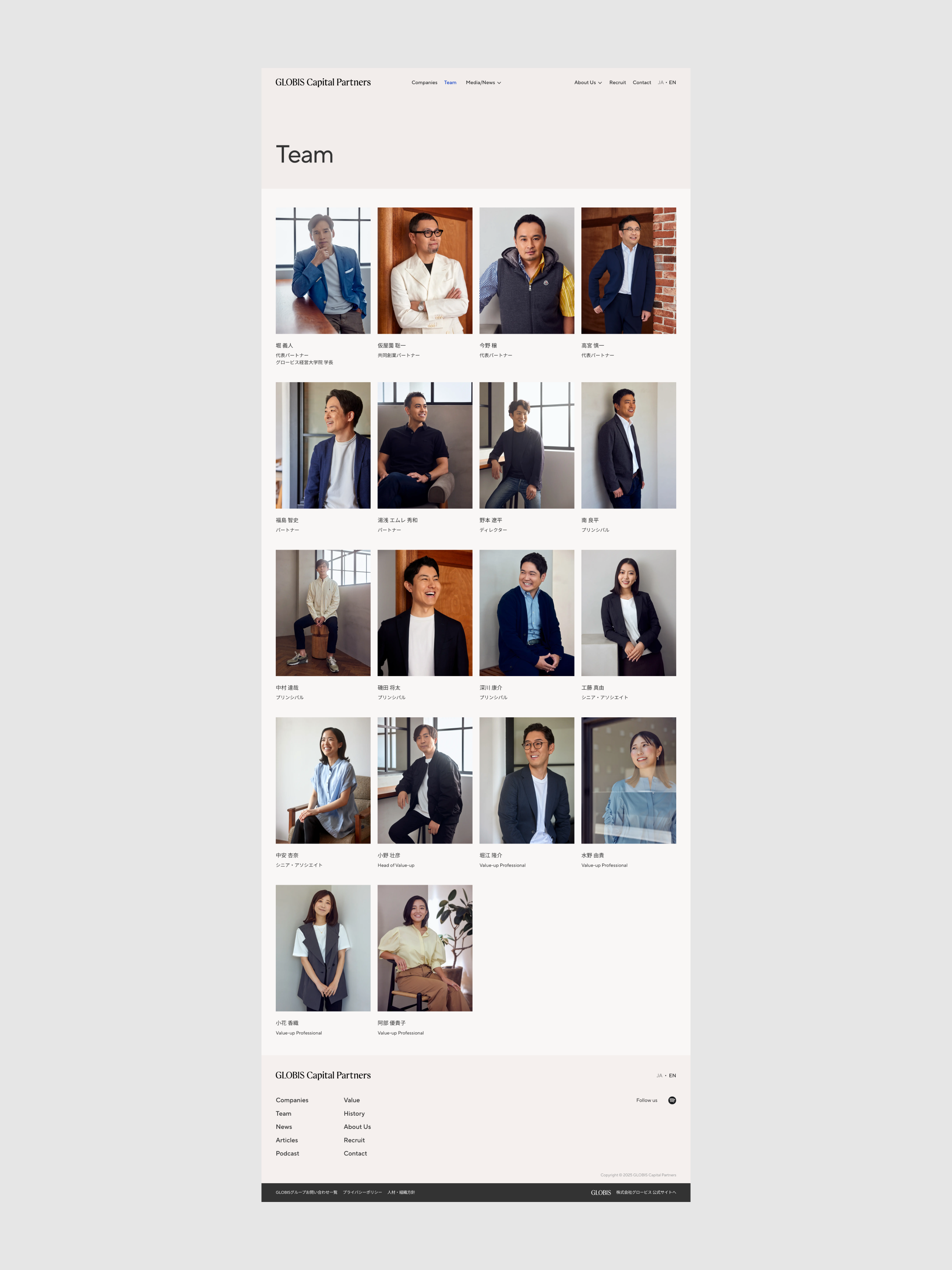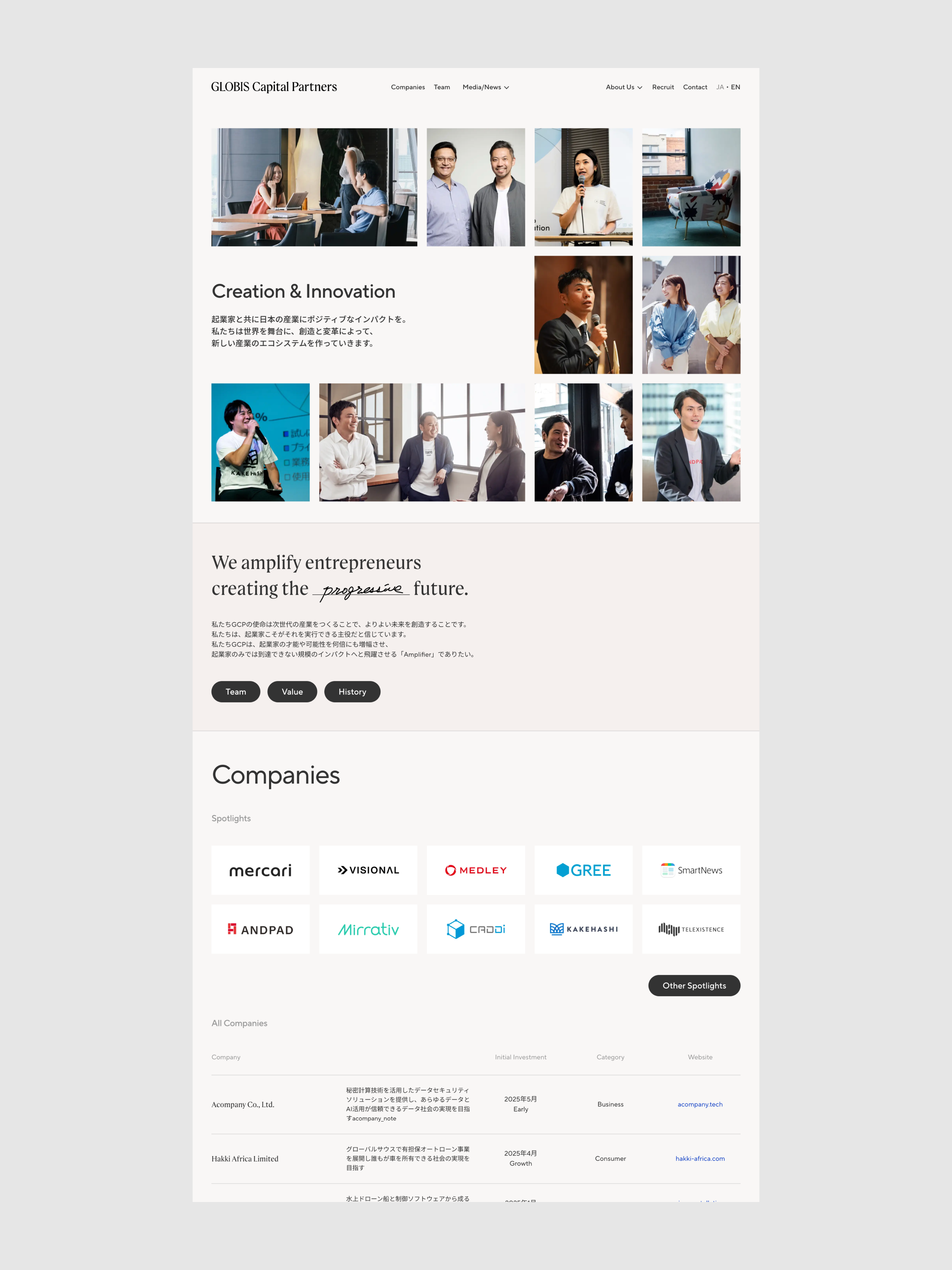 グロービス・キャピタル・パートナーズのコーポレートサイトにおいて、デザインと実装を担当しました。