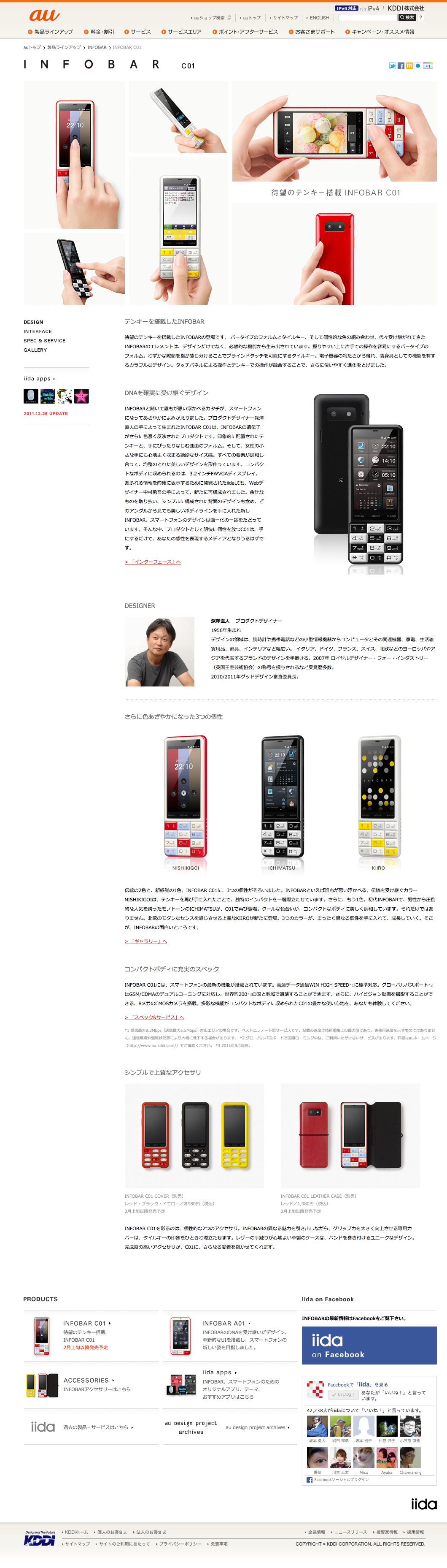 INFOBAR C01のWebサイト、スペシャルコンテンツの “Which Color Do You Like?” の auサイトver. / Facebook ver. を制作しました。